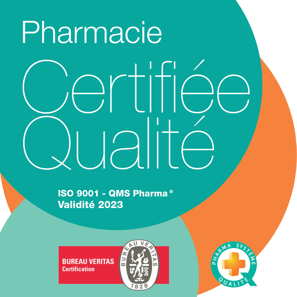 Votre pharmacie est certifiée ISO 9001 – QMS Pharma®. Cette certification atteste de l’engagement des pharmacies, et du sérieux des plans d’actions mis en œuvre au sein de l’officine. C’est également un élément de réassurance pour les patients, clients et partenaires de l’officine.